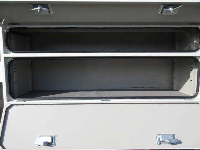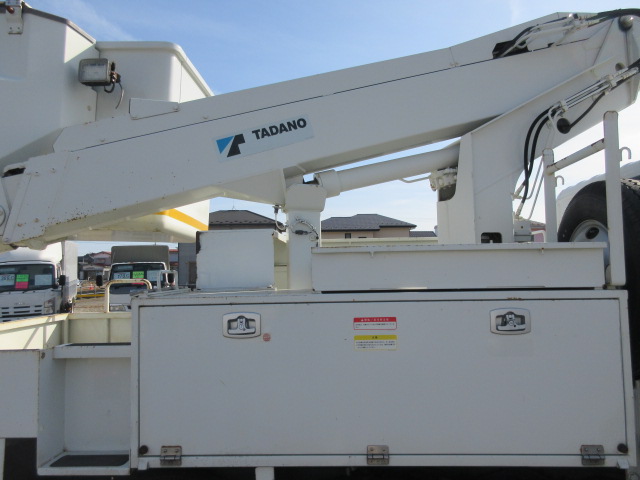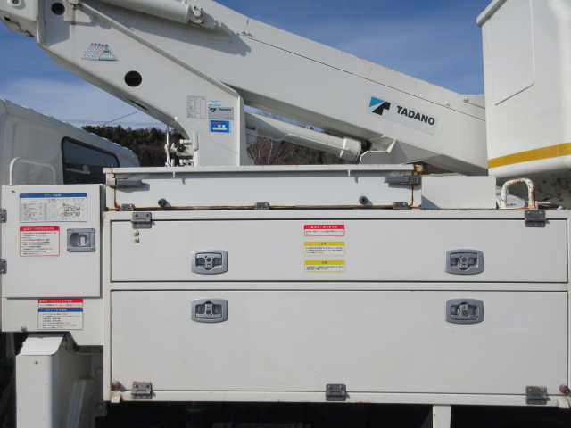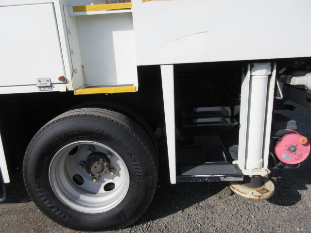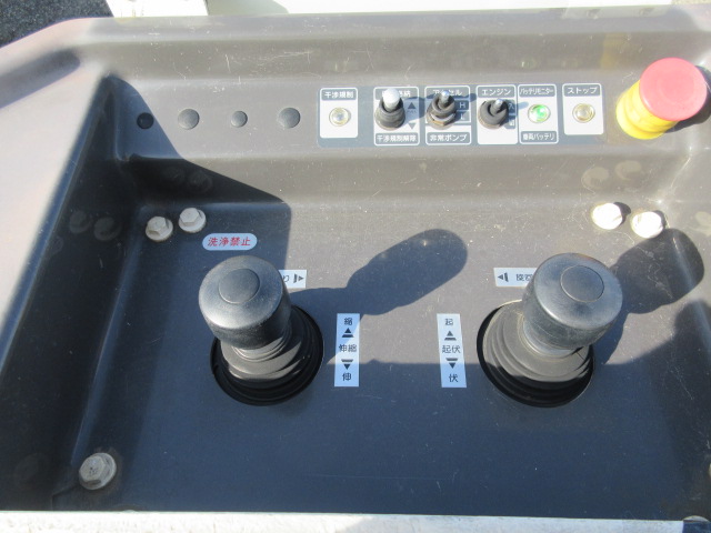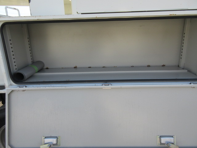 通信仕様9.9m FRPバケット200kgまたは2名 工具箱右1段左2段工具箱 後部梯子収納BOX 上部イネーブルスイッチ付操作ジョイステックレバー 扉付バケット 100V電源 LED作業灯 ジャッキパット・敷板 社外ナビゲーションシステム